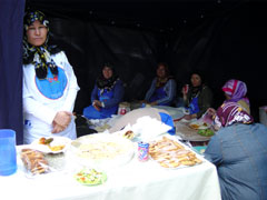 東看看西看看,走馬看花的原因是抵不住另一邊香氣的召喚,鼎沸的人聲之間是一排排的熱葷冷盤,大多是家常小菜的模樣,我們指指點點的各要了一些。然後穿過更多的人和甜點果汁咖啡的攤檔,好不容易找了位子坐下來享用。可惜口味習慣實在太不相同,雖然很特別例如羊肉乳酪小餃子或更小的肉丸子,帶酸味的麵包,用辛辣的扁豆搓成的餅,只是肚皮無法消受,最後還是以最尋常的即席烤餅裹腹。