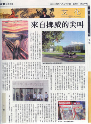 The Scream 》和《 Madonna 》外還有從小到一幅的草稿到大至可放於禮堂的壁畫。不同的是,展廳明亮而帶著鬆弛的寧靜,沒有黝暗如一般藝術館的嚴肅,保安員如站崗般守於每一個可見或不可見的角落,以至到處都是不可喧嘩,不可觸摸等各式標語。因為挪威人相信,這些是並不必要的,人貴乎自律。