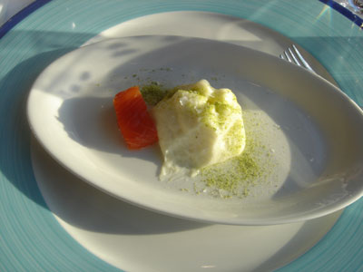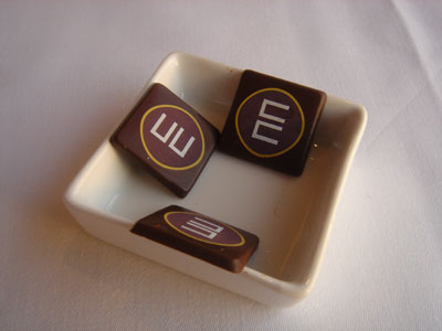 終於到了第九道,驚訝不在於自製的朱古力,只是不喝咖啡的我無聊拿起了載著方糖的小杯來看,在白色和啡色之間,有一顆綠色的,像小石頭,再細看,更像一塊乾了的綠色香口膠,哈哈哈,不知是誰那麼缺德。遞給侍者,她面色一沉,連忙道歉,但我們倒沒有所謂,不想壞了興致。