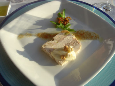 由鷓鴣製成的 terrine,切為一小塊有點像白烚豬肉的寡味,但以鮮忌廉,果仁,小露荀作配,調以煙肉碎的咸香,混著油脂及醋,濃淡相連。