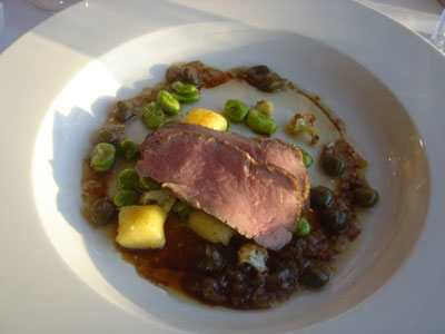 到了從來都是最考功夫的主菜,竟是最出色。主角是既熟還嫩的牛仔肉,鬆軟而不帶渣。作為綠葉的蠶豆和capers有著鹹和酸,底下幾塊gnocchi,意大利餃子,好煙韌,出奇的豐滿,沾上醬汁同吃,一流。